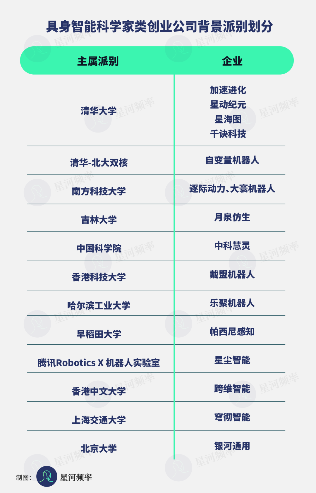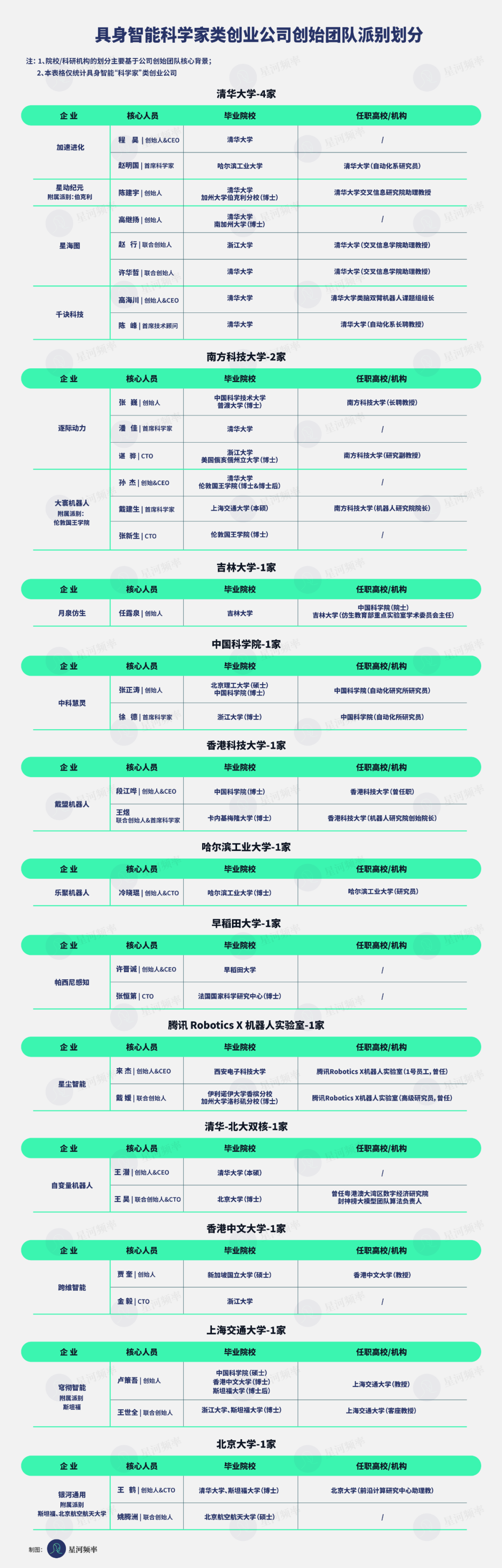 在我们统计的具身智能赛道 32 家核心公司中,有 16 家由科学家创立或主导。他们出身清华、北大、上海交大、浙大、哈工大,或是海外的伯克利、斯坦福等名校。
