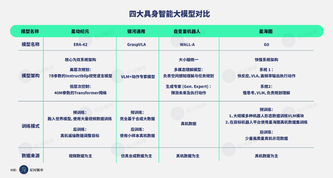 这四家企业的共性是,不约而同地做了端到端 VLA 模型。技术思路与 Figure、PI (Physical Intelligence)、NVIDIA 等国际前沿研究同步。