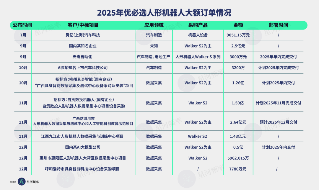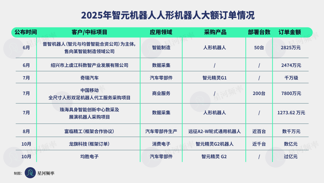 2025 年,人形机器人领域的大额订单呈现出活跃且多元的格局,集中在下半年爆发。