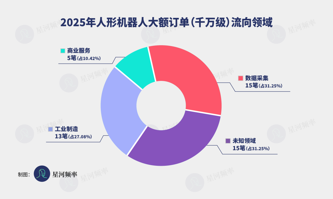 从订单面向的行业分布看,数据采集与工业领域是人形机器人需求最集中的方向。