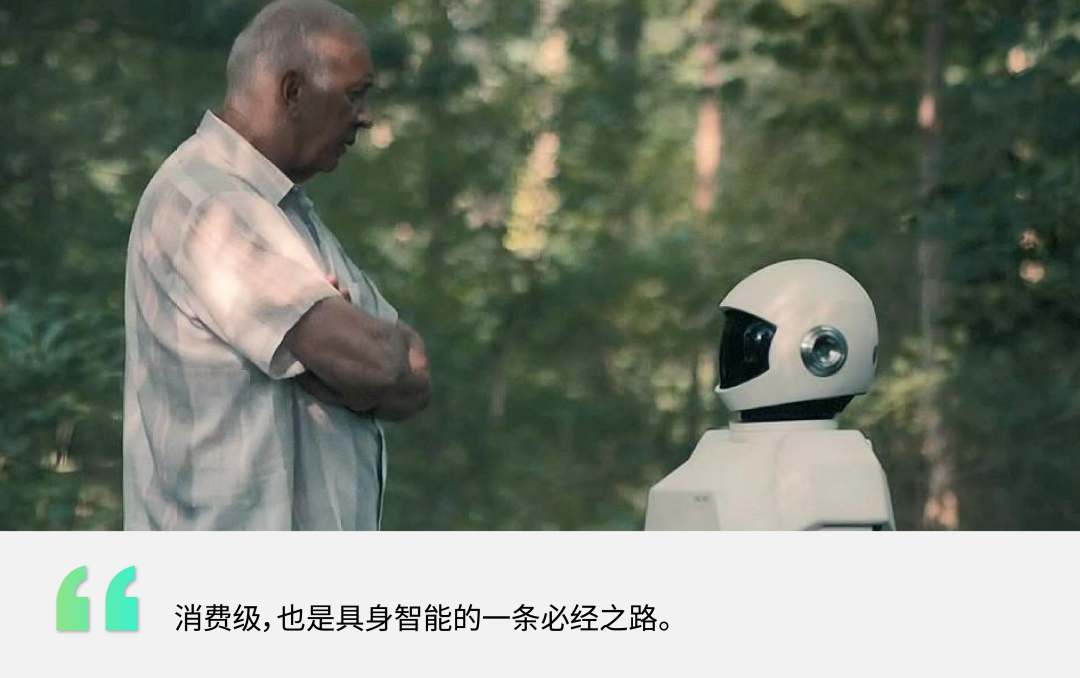 首先,消费级产品是具身智能公司在理想照进现实过程中,获取可持续现金流的一条可行途径,甚至也是大多具身智能公司最终的产品理想。