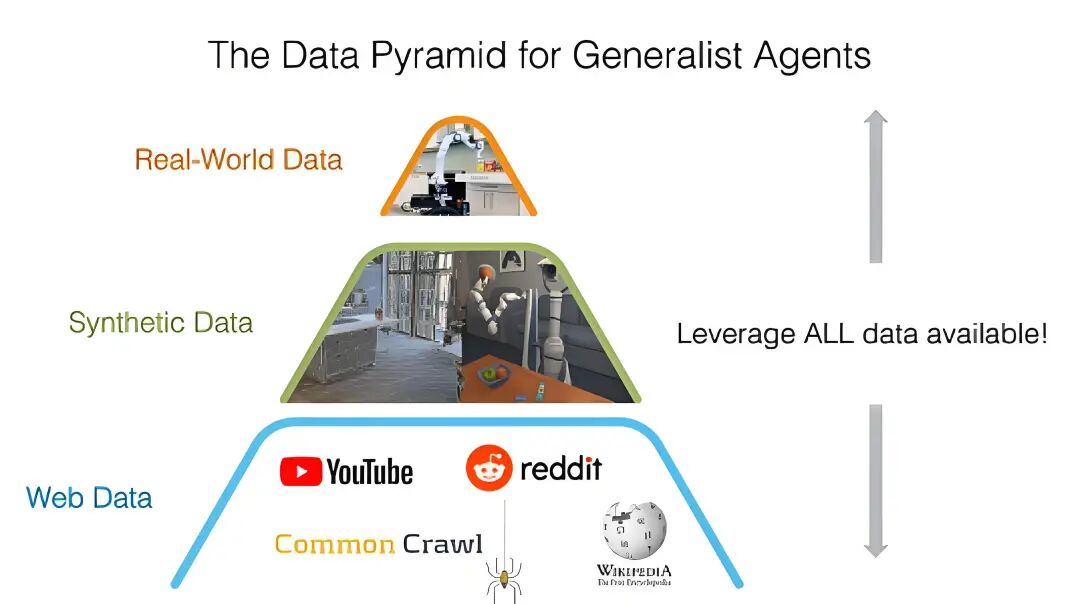 金字塔的底层,是互联网视频数据。这类数据量大、获取成本低,但缺乏深度物理交互信息。