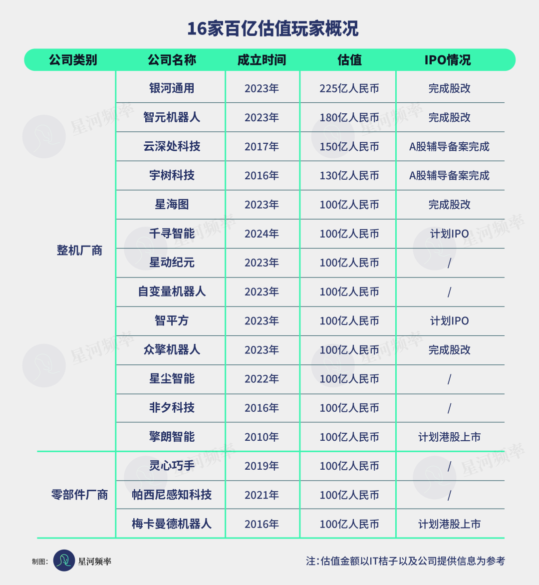 资本的热度迅速聚拢到头部玩家身上,直接催生出了 12 家新晋具身智能百亿估值玩家。