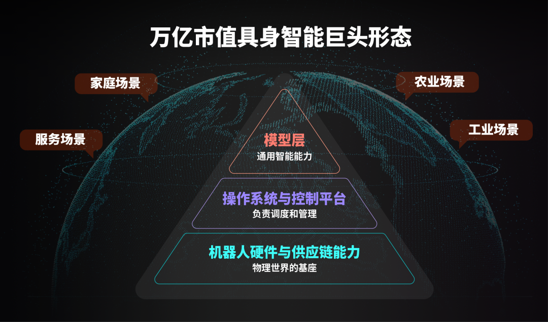 如果将目光投向更远的未来,一家万亿市值的具身智能巨头,可能会长成这样的形态: